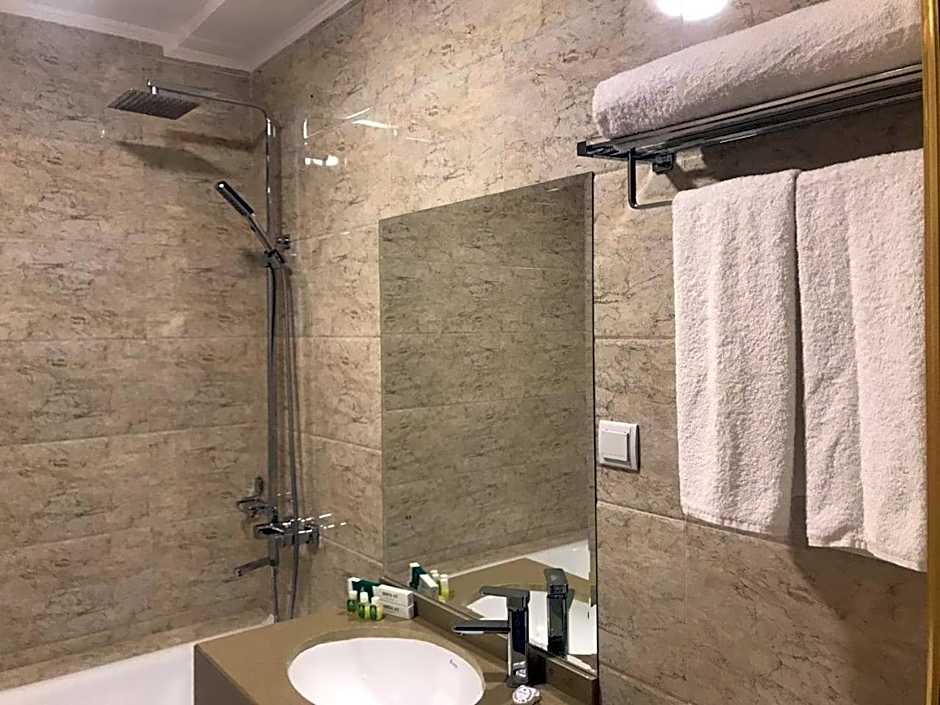 The spacious twin room features air conditioning, a mini-bar, a balcony with garden views as well as a private bathroom boasting a bath. The unit has 2 beds.